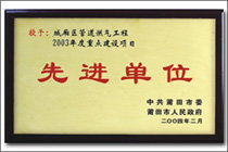 2004年02月 被中共莆田市委、莆田市人民政府授予“城廂區(qū)管道燃氣工程2003年度重點建設項目先進單位”。