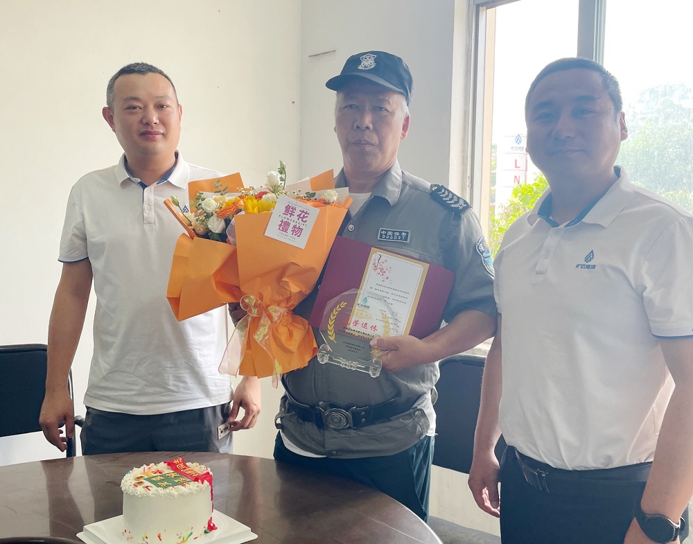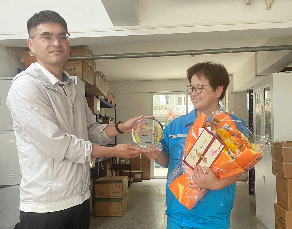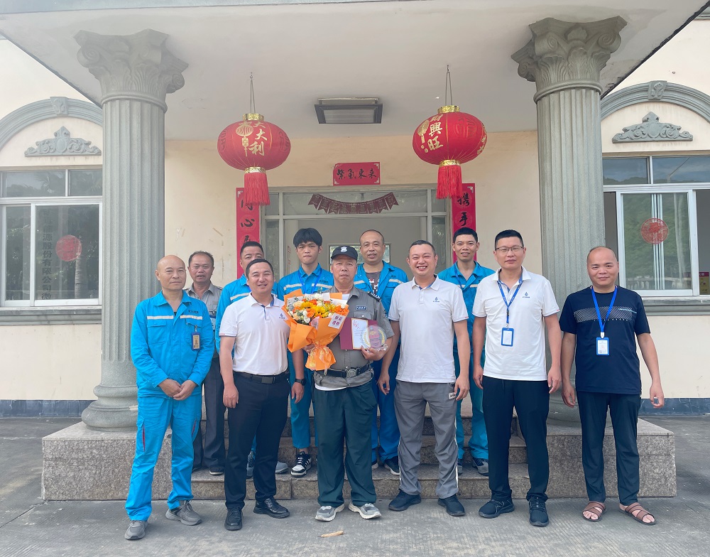 5 月 16 日,副總焦鵬前往劉國富的工作崗位,送上帶有司花的鮮花、蛋糕、總經(jīng)理筆簽的賀卡以及紀(jì)念水晶杯。當(dāng)被問及為何能在公司堅(jiān)守 17 年時(shí),劉國富動(dòng)情地說:“莆田燃?xì)馐聵I(yè)部讓我學(xué)會(huì)了很多東西,所以我很想為公司服務(wù)?!?副總焦鵬也關(guān)切地詢問了他退休后的生活規(guī)劃,希望他能好好享受退休生活。
