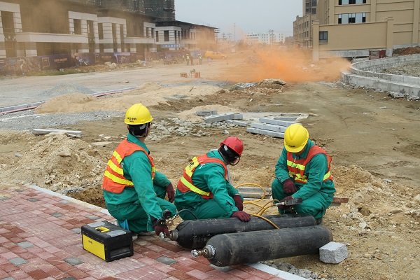 當(dāng)天上午9:30,管網(wǎng)部2652111值班搶險(xiǎn)電話驟響:“位于萬科小區(qū)附近,燃?xì)夤艿涝谑┕み^程中不慎挖破,造成燃?xì)庑孤┲?,?qǐng)盡快搶修處理”。值班人員隨后立即向119報(bào)警并上報(bào)運(yùn)行中心總監(jiān)黃劍鋒,黃總監(jiān)接到通報(bào)后立即啟動(dòng)公司突發(fā)事故應(yīng)急預(yù)案,并向曠遠(yuǎn)能源總經(jīng)理姜升科匯報(bào)事故發(fā)生情況。事故發(fā)生15分鐘后,各應(yīng)急處理小組奔赴現(xiàn)場(chǎng),各就各位:泄漏源控制小組立即疏散現(xiàn)場(chǎng)人員、設(shè)立警戒,緩緩關(guān)閉上下游閥門并通入氮?dú)膺M(jìn)行置換;消防小組配合消防利用水槍進(jìn)行管道降溫和燃?xì)怛?qū)散;搶修組人員在確認(rèn)燃?xì)鉂舛冉档偷桨踩孪藓罅⒓磳?duì)燃?xì)夤苓M(jìn)行修復(fù),并在冷卻后進(jìn)行試壓檢查;控制小組使用檢測(cè)儀對(duì)著火點(diǎn)附近進(jìn)行濃度檢測(cè),確保周邊環(huán)境安全后恢復(fù)正常供氣。