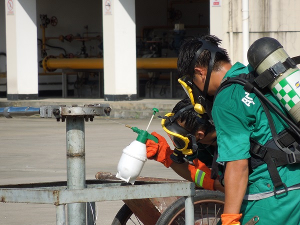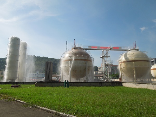 本次演練項(xiàng)目為:LPG1#儲(chǔ)罐底部出口閥被恐怖分子破壞造成液化石油氣泄漏事故的應(yīng)急處置。主要流程為:模擬事故發(fā)生、制服歹徒、報(bào)警、應(yīng)急啟動(dòng)、人員疏散、安全警戒、消防噴淋驅(qū)散稀釋燃?xì)鉂舛?、搶險(xiǎn)堵漏及最終解除警戒等。在總指揮的領(lǐng)導(dǎo)下,所有參演人員嚴(yán)肅認(rèn)真、有條不紊地進(jìn)行各個(gè)演練步驟,歷時(shí)一個(gè)小時(shí)后,演練圓滿結(jié)束。