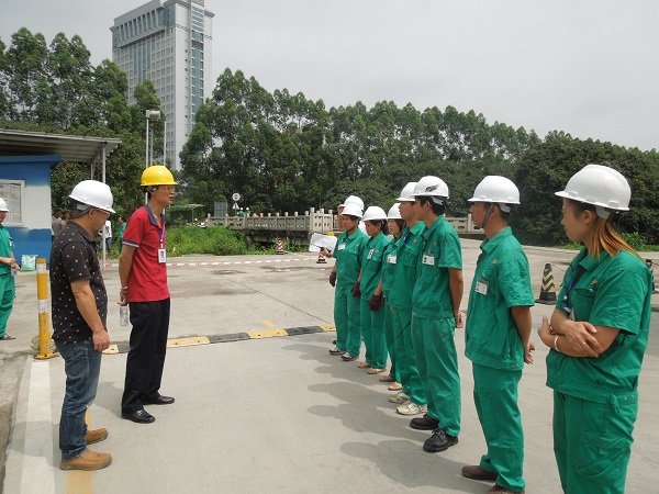 事故起因是荔園加氣站7#加氣槍加氣機(jī)內(nèi)有異常的響聲,且燃?xì)鈭缶黜懫?,技術(shù)人員初步判斷為加氣機(jī)內(nèi)部發(fā)生大泄漏。接到通知后,銷售部負(fù)責(zé)人林啟航立即將事故概況向上級相關(guān)部門匯報,協(xié)調(diào)維修組人員前來協(xié)助,并迅速啟動應(yīng)急處理方案。演練中,各應(yīng)急處理小組緊張且有秩序地開展應(yīng)急處理工作:停止一切生產(chǎn)、切斷電源,封鎖進(jìn)出路口、疏散工作人員及無關(guān)人員;搶險人員佩戴安全設(shè)備進(jìn)入現(xiàn)場,關(guān)閉出口閥,打開放空閥排空壓力,并檢測周邊天然氣濃度;之后,維修組進(jìn)入現(xiàn)場修理,經(jīng)過多方搶修,該加氣機(jī)修復(fù)完畢,其它機(jī)臺也恢復(fù)正常運行。