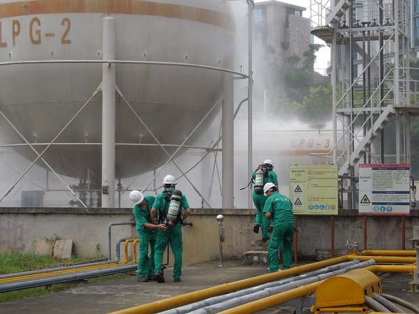 2014年6月18日下午15:30,曠遠(yuǎn)能源股份有限公司在生產(chǎn)部氣源廠開(kāi)展關(guān)于LPG儲(chǔ)罐法蘭泄漏應(yīng)急處理演練。
